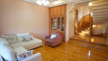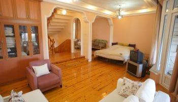 В квартире выполнена качественная отделка, на полу лежит натуральный паркет, в ванных и на балконах – кафель, потолки декорированы гипсокартоном, лестницы обиты деревом.