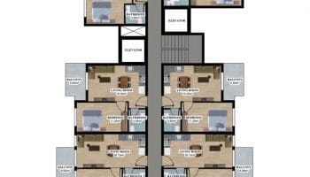 2+1: гостиная, совмещенная с кухней, 2 спальни, ванная, 2 балкона. Площадь 100 кв.м.