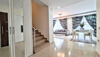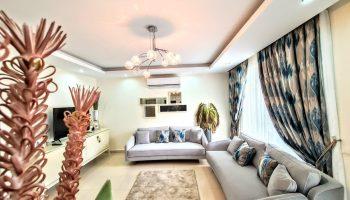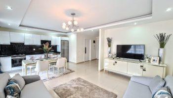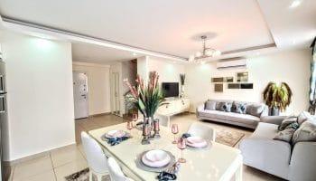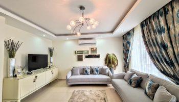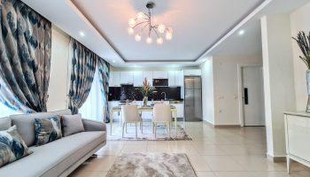Планировка 2+1, общей площадью 170м². Кухня объединена с гостиной зоной.