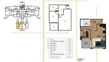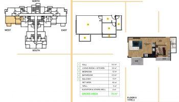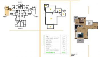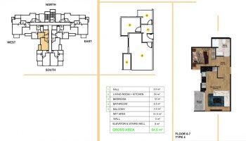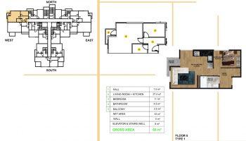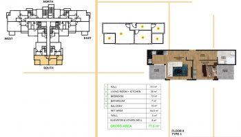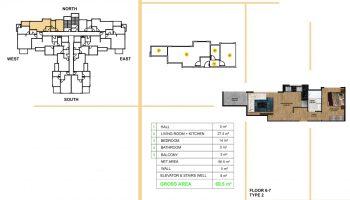 Жилой комплекс состоит из трех блоков. Два 5 — этажных и одного 9 — этажного жилых блоков. В нем представлены на продажу квартиры площадью от 53 — 126 м2.