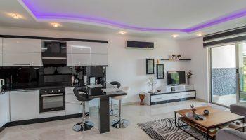 Квартира располагается на 2 этаже и имеет площадь 133 м2. Планировка квартиры 2+1, две спальни и гостиная, которая совмещена с кухней, американского типа. Квартира имеет балкон и две ванных комнаты.