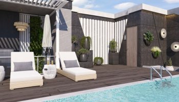 По проекту ЖК представляет собой 11 этажное здание, расположенное на участке площадью 3200 кв.м. На территории будет сад с ландшафтным дизайном, два бассейна (плюс один на крыше), зона для отдыха, кафе у бассейна, парковка. Во внутреннюю инфраструктуру войдет респшн, лобби, кинотеатр, бизнес-центр, бильярд и настольный теннис, бассейн с подогревом для зимнего отдыха, фитнес-центр и сауна.