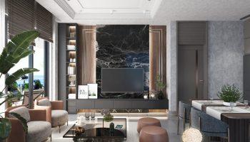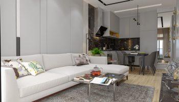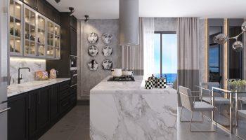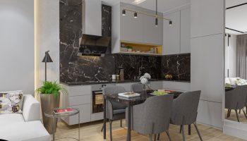 В стоимость квартир входит чистовая отделка: ламинат по полу, декоративные элементы из гипсокартона с подсветкой на потолке, кухонная корпусная мебель с мраморной столешницей, входная и межкомнатные двери, электропроводка, розетки и выключатели и др.
