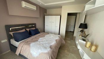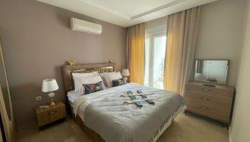 Дуплекс располагается на 8 этаже и имеет площадь 115 м2. Планировка 2+1, две спальни, гостиная и кухня, которые совмещены. В дуплексе два балкона и две ванных комнаты.