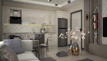 В стоимость квартиры 1+1 входит плита, духовка и вытяжка, в стоимость дуплексов 2+1 входят плита, духовка, вытяжка, стиральная машина, посудомоечная машина и 3 кондиционера.
