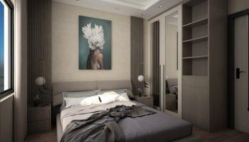 5 двухкомнатных планировки 1+1 — спальня, кухня — гостиная, ванная комната и балкон, площадью 55 м2;