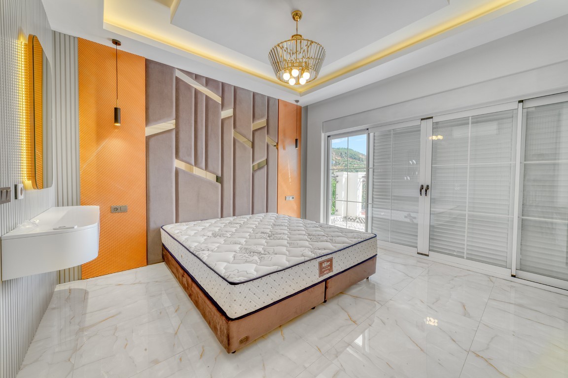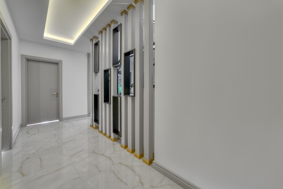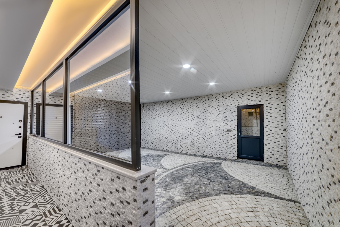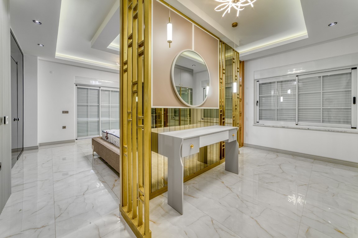 Вилла будет сдаваться в чистовой отделке, керамическая плитка высшего качества на полах, основная и декоративная системы освещения, кухонный гарнитур с гранитной рабочей поверхностью, встроенный гардероб, стальная входная дверь, двойные алюминиевые стеклопакеты, полностью укомплектованные ванные комнаты, и др.