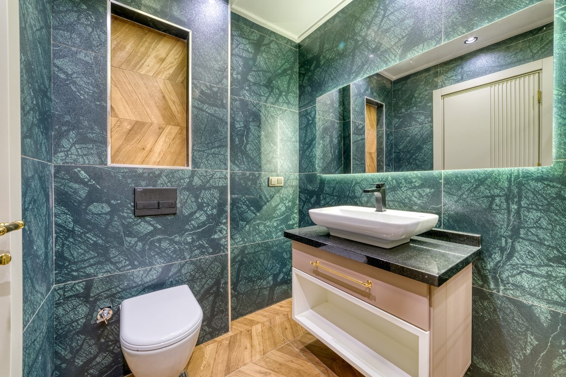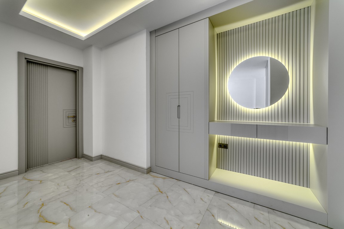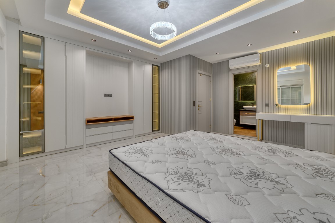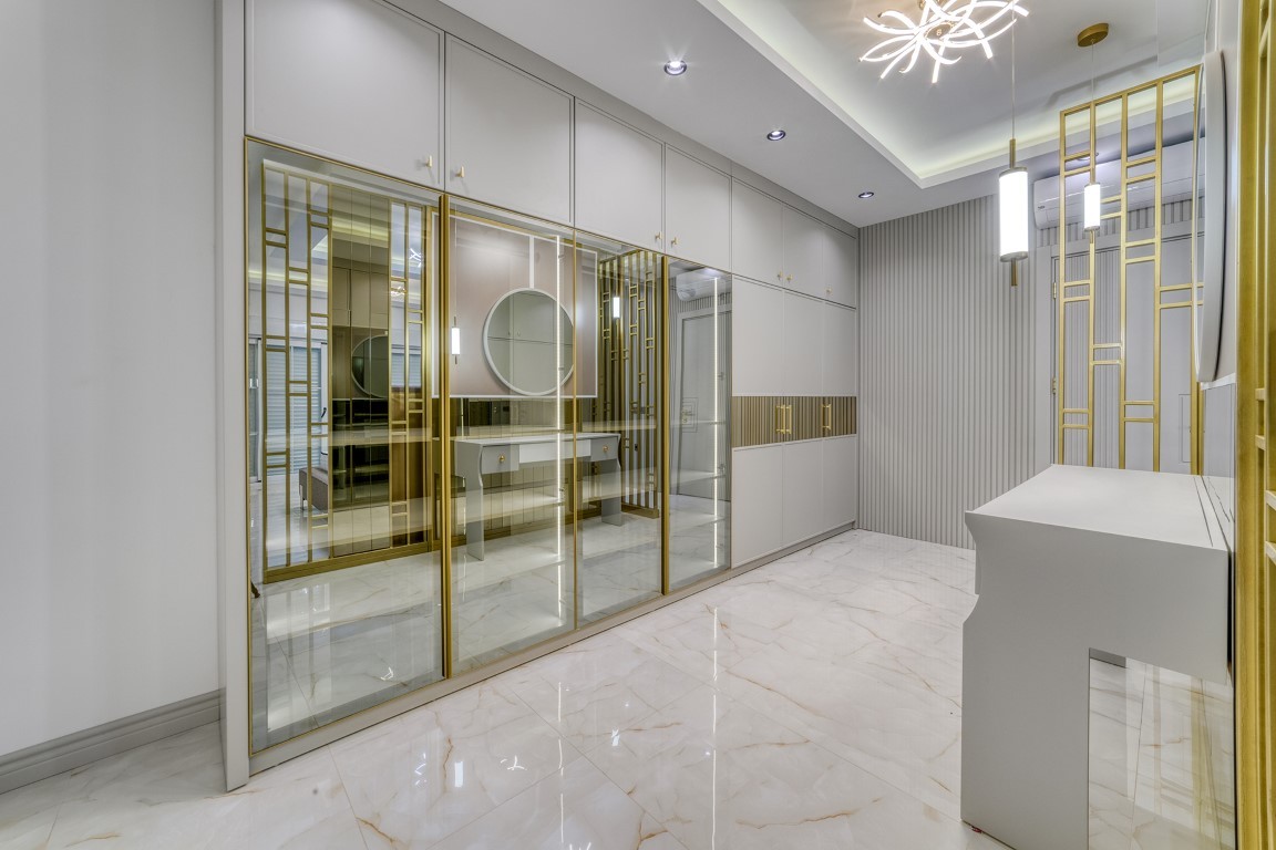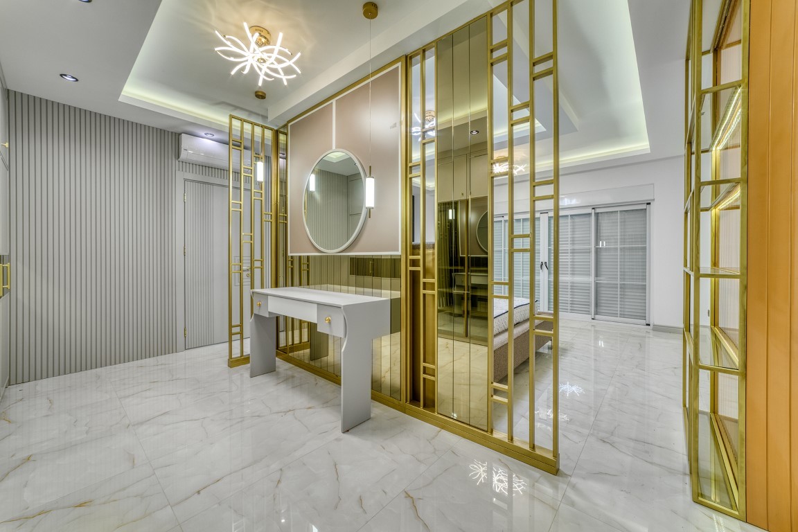 Вилла будет сдаваться в чистовой отделке, керамическая плитка высшего качества на полах, основная и декоративная системы освещения, кухонный гарнитур с гранитной рабочей поверхностью, встроенный гардероб, стальная входная дверь, двойные алюминиевые стеклопакеты, полностью укомплектованные ванные комнаты, и др.