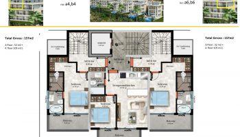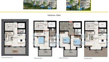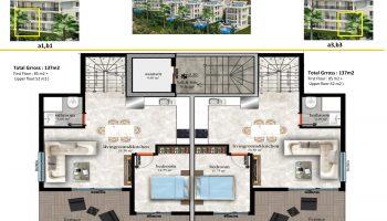 Садовые дуплексы планировки 3+1 – 3 спальных комнаты, гостиная, совмещенная с кухней, 2-3 ванных комнат, 2 балкона.