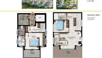Садовые дуплексы планировки 2+1 – две спальных комнаты, гостиная, совмещенная с кухней, 1-2 ванных комнаты и два балкона.