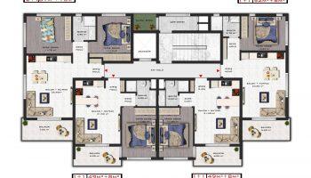 3+1 – дуплексы, три спальных комнаты, гостиная, совмещенная с кухней, 3 санузла и 2 балкона, дуплекс двухуровневый.