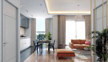 2+1 – дуплексы, две спальных комнаты, гостиная, совмещенная с кухней, 2 санузла и 2 балкона, дуплекс двухуровневый.