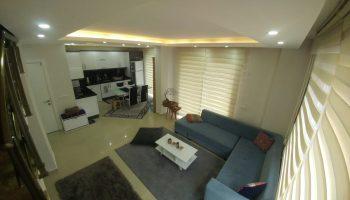 Дуплекс занимает два этажа, 1 и 2, и имеет площадь 125 м2. Планировка 2+1, две спальни и гостиная, которая совмещена с кухней, американского типа. Дуплекс имеет два балкона и две ванных комнаты.