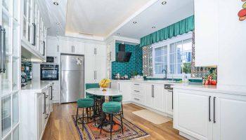 Дуплекс занимает два этажа, 1 и 2, и имеет площадь 250 м2. Планировка 4+1, четыре спальни и гостиная, кухня имеет отдельное расположение. Дуплекс имеет несколько балконов и три ванных комнаты.