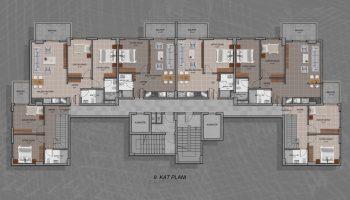 5+1 – дуплексы, пять спальных комнат, гостиная, совмещенная с кухней, 3 ванных комнаты, гардеробная, балкон и две террасы, дуплекс двухуровневый