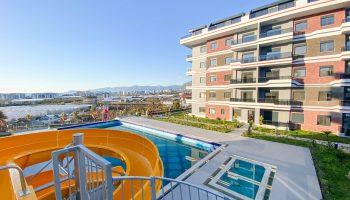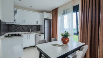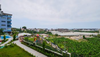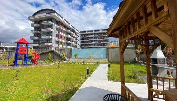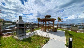 Дуплекс располагается в жилом комплексе, который построен в современном районе Тосмур. Это очень уютный район находящийся рядом с центром Алании. В нем мало отелей, поэтому нет больших толп туристов и шума аниматоров. Зато в нем есть несколько супермаркетов, кафе, мест отдыха и прочих приятных мест.