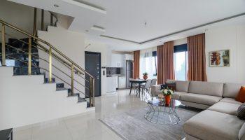 Продается полностью меблированным. В таком виде, в котором Вы видите его на фотографиях. Дуплекс оснащен укомплектованными санузлами и кухонным гарнитуром. Все включено в стоимость жилья. Вам останется выбрать декор, который создаст и придаст индивидуальность и уют новому дому, при необходимости, Вы можете обратиться к специалистам нашего послепродажного сервиса.