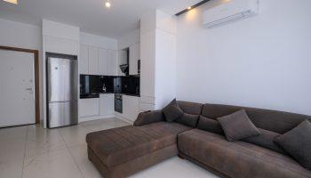 Апартаменты расположены на 1 этаже и имеют площадь 80 м2. Планировка апартаментов 2+1, две спальни и гостиная, которая совмещена с кухней, американского типа. Апартаменты имеют два балкона и две ванных комнаты.