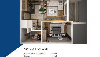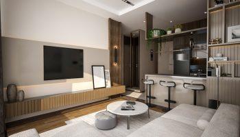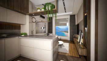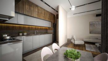 Апартаменты 1+1 — подразумевают под собой спальную комнату, гостиную, совмещенную с кухней, американского типа, ванную комнату и лоджию.