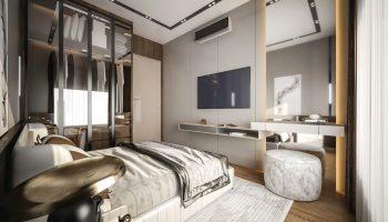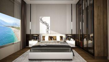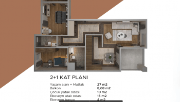 Апартаменты 2+1 – подразумевают под собой две спальных комнаты, гостиную, совмещенную с кухней, американского типа, 2 ванных комнаты и террасу.