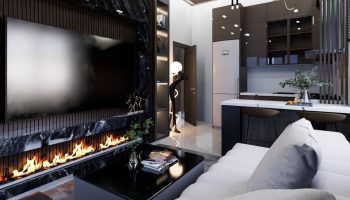 В стоимость входит чистовая отделка: напольное покрытие высшего качества, кухонный гарнитур с гранитной рабочей поверхностью, встроенный гардероб, стальная входная дверь с тройным замком, двойные алюминиевые панорамные стеклопакеты, полностью укомплектованные ванные комнаты, и др.