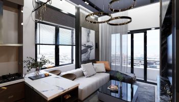 двухуровневые пентхаусы 4+1 подразумевают под собой на первом уровне кухню, совмещенную с гостиной американского типа, спальную комнату, ванную комнату и террасу; на втором уровне три спальных комнаты, две ванных комнаты и террасу.
