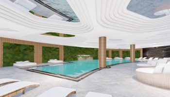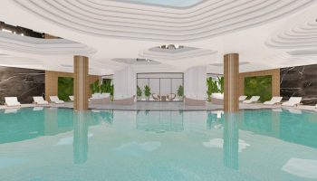 Инфраструктура комплекса будет включать в себя аквапарк, бар у бассейна, библиотека, бильярд, боулинг, лифт, детскую площадку и детский бассейн, зелёный благоустроенный сад, зоны отдыха с шезлонгами и барбекю, крытую и открытую парковку, открытый летний и закрытый зимний (с подогревом воды и полов) бассейны, игровую комнату, кинотеатр, конференц-зал, массажный кабинет, мини-клуб, прогулочные дорожки, римскую парную, спутниковое ТВ, турецкий хамам и финскую сауну, фитнес центр, электрогенератор и лобби, соляную комнату, СПА-зону и ресепшн.