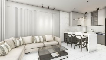 Дуплексы 2+1 – подразумевают под собой на первом уровне две спальных комнаты, ванную комнату и террасу, на втором уровне гостиную, совмещенную с кухней, американского типа, ванную комнату и террасу.