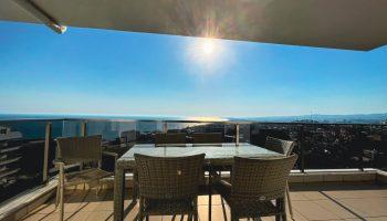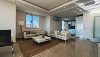 Пентхаус продаётся полностью меблированным, оснащен укомплектованным санузлом и кухонным гарнитуром. Напольное покрытие керамическая плитка. С широких террас открывается панорамный вид на город, горы, море и благоустроенную территорию комплекса.