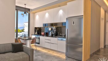 В стоимость апартаментов включена финишная отделка высококачественными материалами, корпусная мебель на кухне и в ванных комнатах, полностью готовые к эксплуатации санузлы с подогревом полов и проточным водонагревателем.