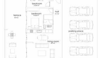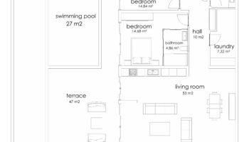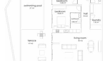 Все виллы имеют планировку 2+1 (две спальни, гостиная совмещенная с кухней, 2 ванные комнаты, террасу)