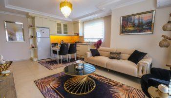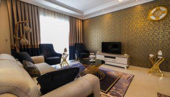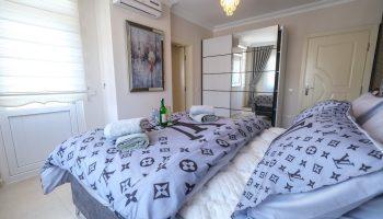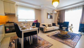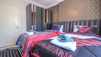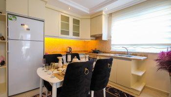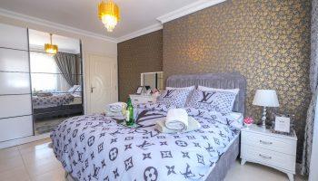 Квартира располагается на 9 этаже и имеет площадь 120 м2. Планировка 2+1, подразумевает под собой две спальных комнаты и гостиную, которая совмещена с кухней американского типа, две террасы и две ванных комнаты. Напольное покрытие керамическая плитка.