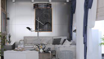 апартаменты 1+1 подразумевают под собой спальню и кухню, совмещенную с гостиной американского типа, ванную комнату и лоджию.