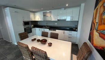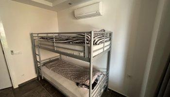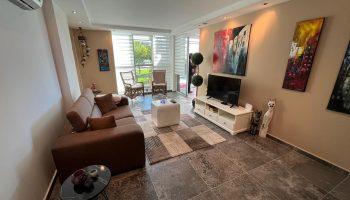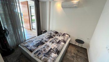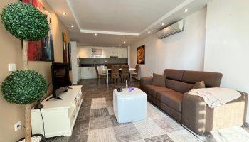 Площадь квартиры расположенной на 1 этаже 130 м2. Имеет планировку 2+1, подразумевающую под собой, две спальных комнаты и гостиную, совмещенную с кухней американского типа, две ванных комнаты и две террасы. Напольное покрытие – керамическая плитка.