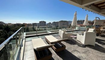 Площадь квартиры 200 м2, расположена на 3 этаже. Имеет планировку 3+1, подразумевающую под собой три спальни и гостиную, которая совмещена с кухней американского типа, две ванных комнаты и две террасы. Напольное покрытие – высококачественная керамическая плитка.
