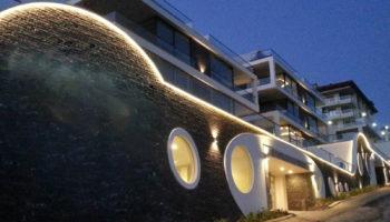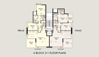 Апартаменты располагаются на втором этаже, имеют площадь брутто 125 кв.м. и планировку 2+1. Здесь две спальни, кухня совмещенная с гостиной, коридор, 2 санузла и 2 солнечных террасы.