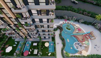В стоимость входит чистовая отделка: керамическая плитка, кухонный гарнитур с гранитной рабочей поверхностью, стальная входная дверь с тройным замком, двойные панорамные стеклопакеты, полностью укомплектованные ванные комнаты, декоративные подвесные потолки, встроенное точечное освещение, инсталляция под установку кондиционеров, инсталляция под установку проточного водонагревателя.