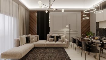 В стоимость входит чистовая отделка: керамическая плитка высшего качества на полах, кухонный гарнитур с гранитной рабочей поверхностью, стальная входная дверь с тройным замком, двойные панорамные стеклопакеты, полностью укомплектованные ванные комнаты, и др. Выполнена тепло- и звуковая изоляции.