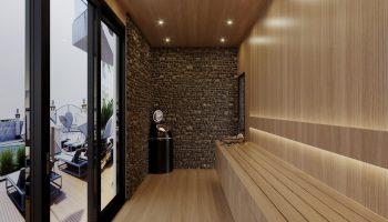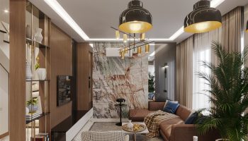 Дуплекс 3+1 — подразумевающий под собой на первом уровне гостиную, совмещенную с кухней американского типа, спальную комнату, ванную комнату и террасу, на втором уровне две спальные комнаты, ванную комнату и террасу.
