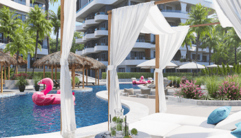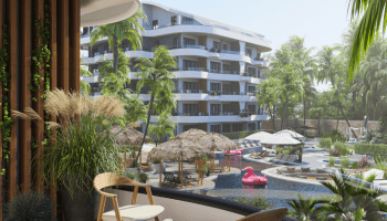 Квартира будет располагаться на 1 этаже и иметь площадь 47 м2. Планировка 1 + 1, подразумевает под собой спальную комнату, гостиную, которая совмещена с кухней американского типа, террасу и ванную комнату. Апартаменты продаются от собственника без мебели, будут оснащены укомплектованным санузлом и кухонным гарнитуром. Напольное покрытие керамическая плитка высшего качества.