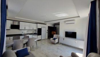 Квартира располагается на 5 этаже и имеет площадь 120 м2. Планировка 3+1, подразумевает под собой три спальных комнаты и кухню, которая совмещена с гостиной, 2 террасы и 2 ванных комнаты. Напольное покрытие высококачественная керамическая плитка.