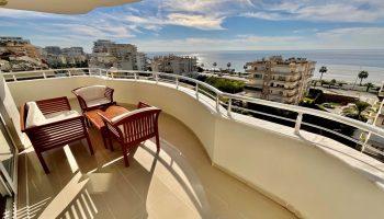 Квартира располагается на 7 этаже и имеет площадь 120 м2. Планировка 1+1, подразумевает под собой две спальни и гостиную, которая совмещена с кухней, две террасы и две ванных комнаты. Напольное покрытие керамическая плитка.