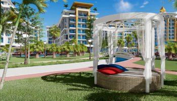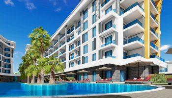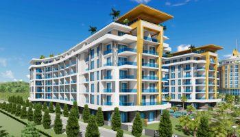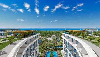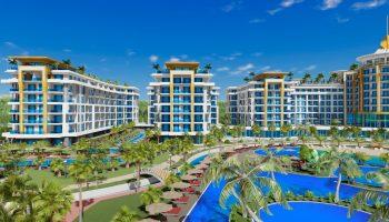 Квартира располагается в масштабном жилом комплексе с инфраструктурой 5 звездосного отеля в районе Тюрклер.