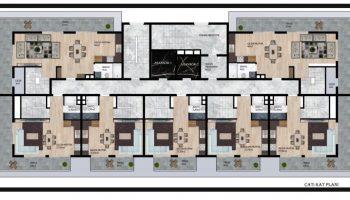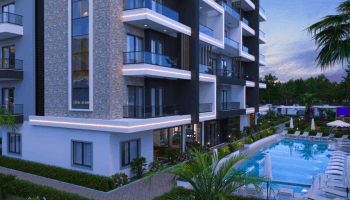 Представляем вашему вниманию новый проект современного жилого комплекса на этапе строительства в районе Паяллар – небольшом прибрежном районе города Аланья.