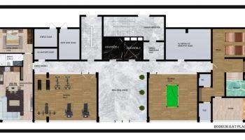Пентхаусы 3+1 – подразумевающие под собой на первом уровне гостиную, совмещенную с кухней, ванную комнату и террасу, на втором уровне три спальных комнаты, ванную комнату и террасу.