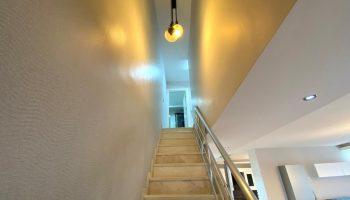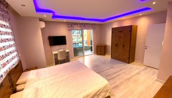 Площадь двухуровневого дуплекса 155 м2. Имеет планировку 2+1, подразумевающую под собой две спальных комнаты и гостиную, кухню, две ванных комнаты, 4 террасы. Расположен на 1 этаже. Напольное покрытие высококачественный ламинат.