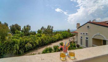 Вилла расположена на побережье Средиземного моря, у подножья покрытых лесами турецких гор, древнем «городе солнца» — живописном Фетхие. С высоты птичьего полета курорт похож на открытку — длинная, непрерывная полоса пляжей, бирюзовые лагуны и припаркованные вдоль берегов яхты.