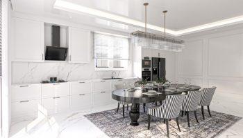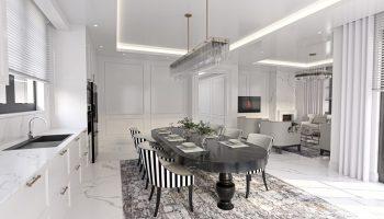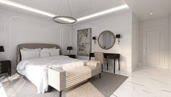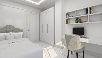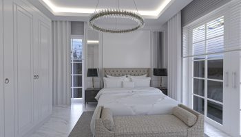 Виллы укомплектованы кухонным гарнитуром. Также в комплектацию входит мебель и сантехника в ванных комнатах, коммуникации для установки индивидуального отопления, кондиционеров. В виллах двойные алюминиевые панорамные стеклопакеты, высококачественные межкомнатные и стальная входная дверь.