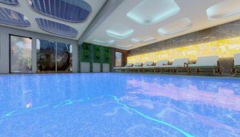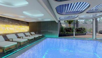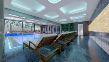 На зеленой и благоустроенной территории комплекса отличная инфраструктура которая представлена баром у бассейна, беседками для отдыха и барбекю зонами, открытым летним и крытым зимним бассейнами, детской игровой комнатой, римской парной, открытой парковкой, финской сауной, фитнес центром, электрогенератором и лобби. В комплексе осуществляется круглосуточное видеонаблюдение.