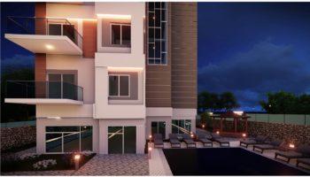 В комплексе всего 5 этажей, запланированы квартиры 1+1 площадью 46 кв метров и пентхаусы 2+1 площадью 80 кв метров.